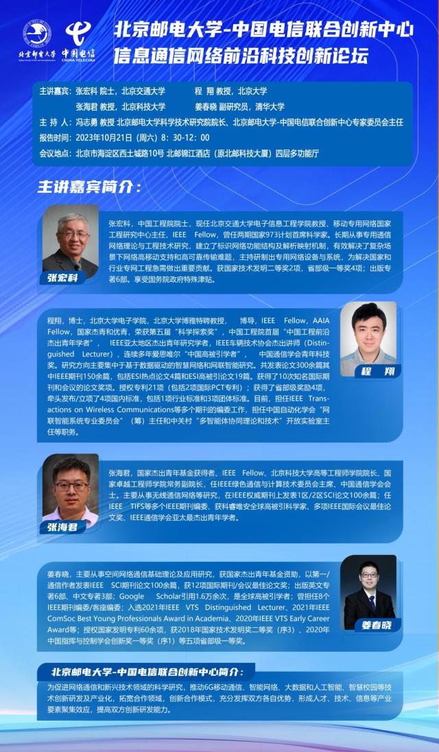 主讲人 :张宏科 程翔 张海君 姜春晓 所在 :亚美AM8AG锦江旅馆四层多功效厅 最先时间 : 2023-10-21 08:30:00