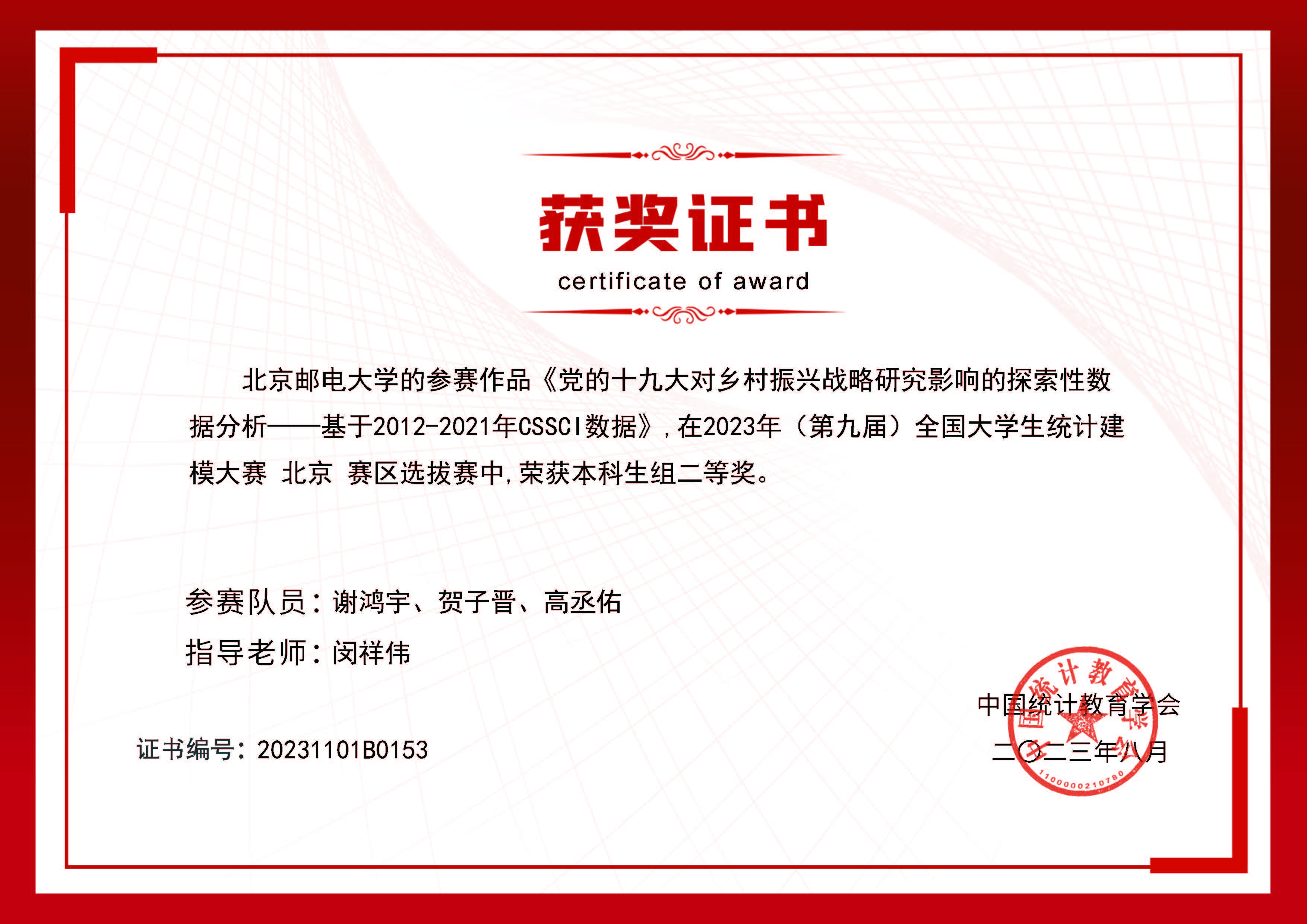 2023年(第九届)天下大学生统计建模大赛北京赛区