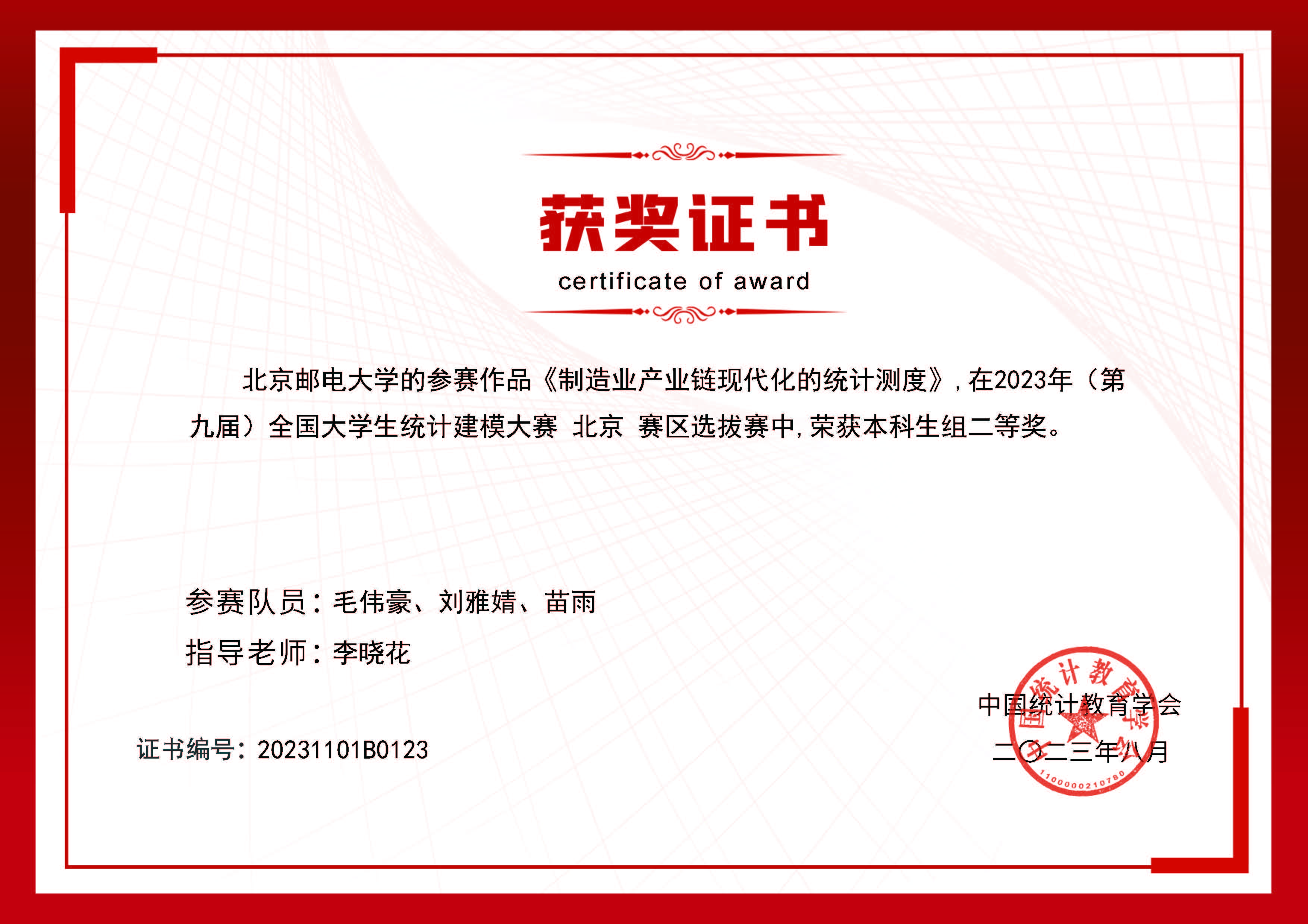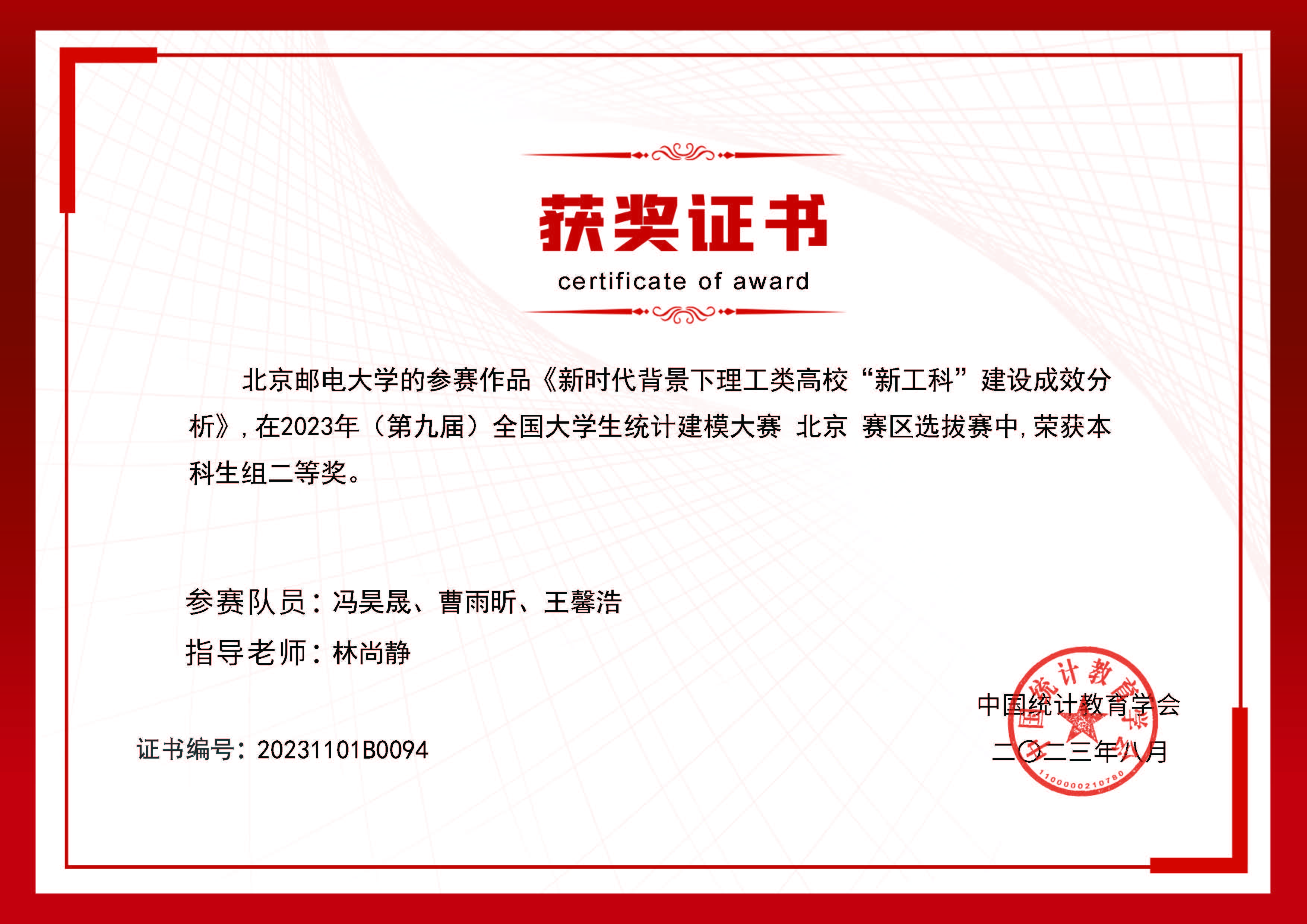 2023年2月第九届天下大学生统计建模大赛开赛,天下27个赛区共有11213支步队提交论文参赛。8月省赛效果宣布,我校学生在北京赛区角逐中斩获佳绩,其中本科生组共计17支步队获奖,其中一等奖2项、二等奖4项、三等奖11项!刷新了我校在天下大学生统计建模大赛取得的历史最好效果!