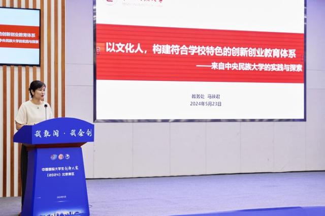 2023年大赛北京赛区优异组织校中央民族大学、天下总决赛冠军项目“跨物种肿瘤基因治疗”、红旅赛道金奖项目“清废兴源”、职教赛道金奖项目“阳宇智维”和工业命题赛道金奖项目“RapidCAM”划分作交流讲话。