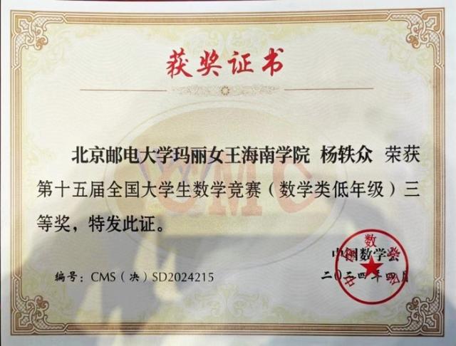 4ÔÂ20ÈÕ£¬µÚÊ®Îå½ìÌìÏ´óѧÉúÊýѧ¾ºÈü¾öÈüÔÚɽ¶«´óѧ¾ÙÐС£±¾½ì¾ºÈü¹²Éè32¸öÈüÇø£¬²ÎÈü¸ßУÓÐ1108Ëù£¬±¨ÃûÈËÊýµÖ´ï288355ÈË¡£¾ÓÉÇ¿ÁÒ¾ºÕù, ×îÖÕÑ¡°Î³ö1100ÓàÃûÓÅÒìÑ¡ÊÖ½øÈë¾öÈü¼ÓÈë×îÖÕ½ÇÖð¡£ÔÚѧУµÄ¶¦Á¦´ó¾ÙÖ§³ÖºÍÎ÷ϯÍŶӵÄÖ¸µ¼Ï£¬ÎÒУ¹²ÓÐ3ÃûѧÉúÈëΧ´Ë´Î¾öÈü£¬ÔÚ¾öÈüÖÐδÀ´Ñ§ÔºµÄ²Ì¾°ÐñͬÑâ»ñµÃ·ÇÊýѧרҵ¶þµÈ½±£¬¾¼ÃÖÎÀíѧԺµÄÎºÔÆÌìͬÑâ»ñµÃ·ÇÊýѧרҵÈýµÈ½±£¬ÂêÀöÅ®Íõº£ÄÏѧԺµÄÑîéóÖÚͬÑâ»ñµÃÊýѧרҵµÍÄê¼¶×éÈýµÈ½±¡£Ôڴ˽쾺ÈüÖУ¬ÎÒУ»¹»ñµÃ¡°µÚÊ®Îå½ìÌìÏ´óѧÉúÊýѧ¾ºÈüÓÅÒì¸ßУ×éÖ¯½±¶þµÈ½±¡±¡£