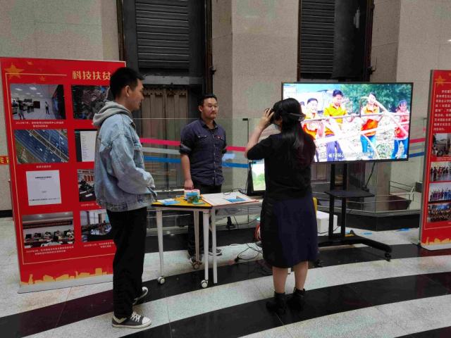 “这是我们研发的智慧神泉旅游导览系统,戴上VR装备,您可以实地感受贵州省长顺县神泉谷的漂亮景物”,展览现场,荣获“天下脱贫攻坚先进整体”的盘算机学院(国家树模性软件学院)师生为调研团成员展示了自主研发的系列信息系统,逼真的虚拟现实体验给各人留下了深刻印象 。